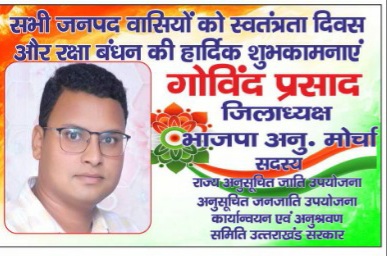 स्वतंत्रता दिवस पर आप सभी जनपदवासियों को हार्दिक शुभकामनाएं