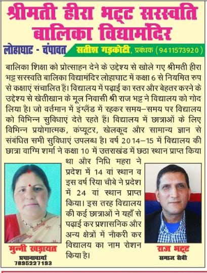 लोहाघाट। राजकीय इंटर कॉलेज मडलक की छात्रा भावना रावत एवं संजना सामंत ने क्षेत्र में उपलब्ध वनस्पतियों एवं घरेलू सामग्री का समावेश कर...