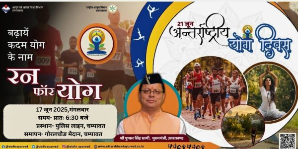 चम्पावत। अन्तर्राष्ट्रीय योग दिवस के काउंटडाउन कार्यक्रम में जिला मुख्यालय चम्पावत में रन फॉर योगा कार्यक्रम का आयोजन किया गया। जिसमें जिले...