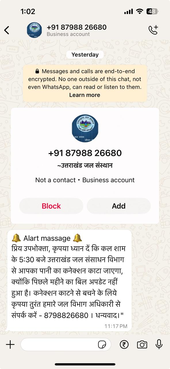 Home उत्तराखंड हैलो मैं जलसंस्थान से बोल रहा हूं, बिल जमा न हुआ तो कनेक्शन काट दिया जाएगा/ जलसंस्थान ने फर्जी कॉल से सावधान रहने के लिए कहा