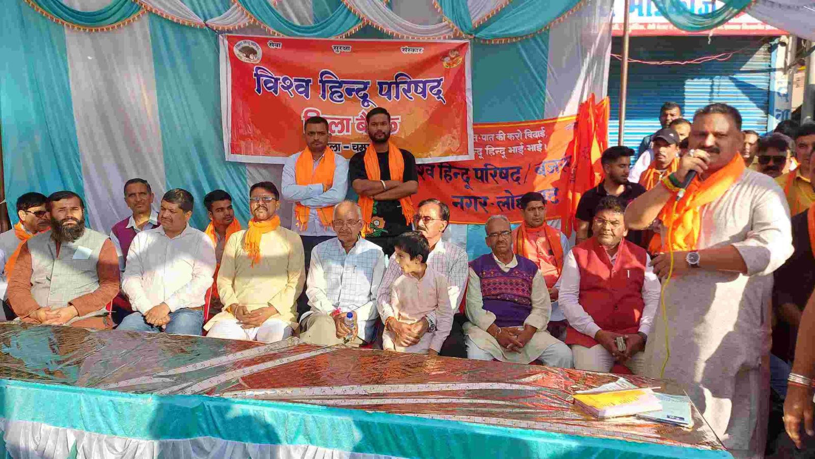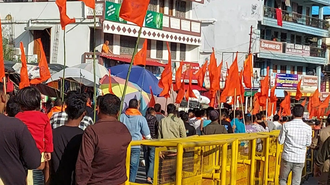 मंगलवार को विश्व हिन्दू परिषद के जिलाध्यक्ष मोहित पांडेय की अध्यक्षता पर आयोजित कार्यक्रम में कार्यकर्ताओं ने नगर सरस्वती शिशु मंदिर मंदिर से नगर के विभिन्न मार्गों से होते हुए स्टेशन बाजार तक रैली निकाली। स्टेशन बाजार में जनसभा का आयोजन किया गया। रैली और सभा का नेतृत्व कर रहे विश्व हिंदू परिषद अध्यक्ष अमित साह ने दल के स्थापना दिवस पर प्रकाश डाला। मुख्य वक्ताओं में एडवोकेट गिरीश उप्रेती, जिला कार्यवाह भुवन पांडेय आदि वक्तओं ने कहा कि हिंदू युवा शक्ति को राष्ट्र हित में संगठित करके भारत वर्ष की अखंडता सुनिश्चित करते हुए अखंड भारत वर्ष के निर्माण के लिए बजरंग दल समाज में काम कर रहा है। ऐसे राष्ट्रवादी संगठन को हमें अपनी ताकत से मजबूत करना चाहिए। समाज में कहीं भी दलितों, वंचितों, पिछड़ों, गरीबों, मजदूरों पर अत्याचार-अनाचार होता है अथवा हमारे मंदिर, गंगा, मातृशक्ति, गाय आदि पर संकट आता है तो कहीं भी रहने वाला व्यक्ति विश्व हिंदू परिषद को आशा भरी नजर से देखता है। वक्ताओं ने लव जिहाद, भू जिहाद, खाद्य जिहाद और नए बाहरी व्यक्तियों द्वारा क्षेत्र में किए जा रहे व्यापार का बहिष्कार करने के लिए कहा। इस दौरान उन्होंने लोगों को जागरुकता का संदेश दिया। संचालन दिनेश पुनेठा ने किया। इस मौके पर चंद्रशेखर जोशी, चंदन बिष्ट, अमित जुकरिया, विजय बिष्ट, राहुल सरदार, रविन्द्र देव, मनीष बाल्मीकी, निर्मल करायत, दीपांशु माहरा, रितिक ढेक, विवेक ओली,राजू गडकोटी, गोविंद वर्मा, सचिन जोशी,हरीश राय, सतीश पांडेय,तनुज,भूपाल सिंह मेहता, दिनेश सुतेडी,धन सिंह पाटनी,मोहन पाटनी, मदन कलौनी, बलवंत गिरी,केडी जोशी, सहित कार्यकर्ता मौजूद रहे।