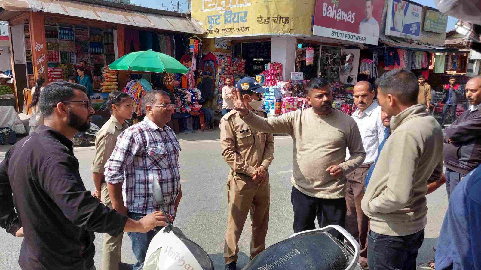 लोहाघाट में दुकानों के बाहर अतिक्रमण पर सात व्यापारियों का 14 हजार का चालान