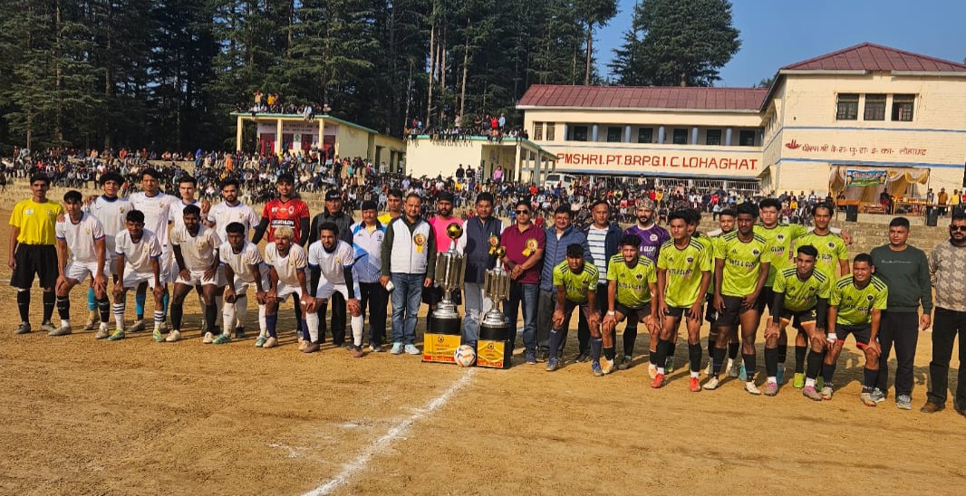सोमवार को जीआईसी खेल मैदान में लोहाघाट फुटबाल संघ के अध्यक्ष बृजेश माहरा की अध्यक्षता पर मुख्य अतिथि गीतांजलि सेवा संस्थान के अध्यक्ष सतीश पांडेय और बीआईटीएम के निदेशक आनंद अधिकारी रहे। पहले हाफ में खेल के 27 वें मिनट में केएफसी पौड़ी गढवाल के 6 नंबर खिलाड़ी अनुराग ने टनकपुर की टीम को शानदार गोल मारकर बढत बनाई। खेल के अंत तक संघर्षपूर्ण मैच में टनकपुर की टीम कोई गोल न कर सकी। पौड़ी गढवाल की टीम ने 1-0 से टनकपुर को हराकर ट्राफी पर कब्जा किया। अध्यक्ष बृजेश माहरा ने बताया कि प्रतियोगिता में लोहाघाट बीबीसी, चम्पावत, पिथौरागढ डीएससी, पिथौरागढ बिण, नेपाल, पौड़ी गढवाल, देहरादून और टनकपुर की टीम प्रतिभाग किया। मुख्य रेफरी सूरज जैंतली, तालिब खान और अभ्युदय रहे। इस मौके पर फुटबाल संघ के प्रदेश उपाध्यक्ष प्रहलाद सिंह मेहता, डॉ. महेश ढेक,संजय फर्त्याल, गिरीश कुंवर, योगेश मेहता, दीपक सुतेड़ी, अजय ढेक, भूप्पी माहरा, मुकेश साह, नरेन्द्र अधिकारी, योगेश कनौजिया, अजय मेहता, विमल मेहता,जीवन राय,विजय मेहता आदि रहे।