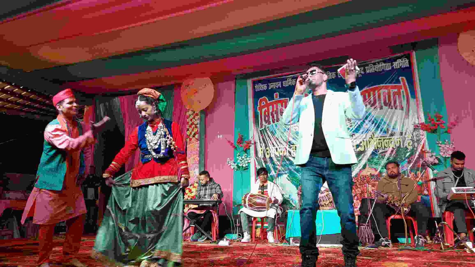बिशंग महोत्सव में नेपाल के गायक चक्र बम और प्रियंका महर के गीतों पर थिरके लोग