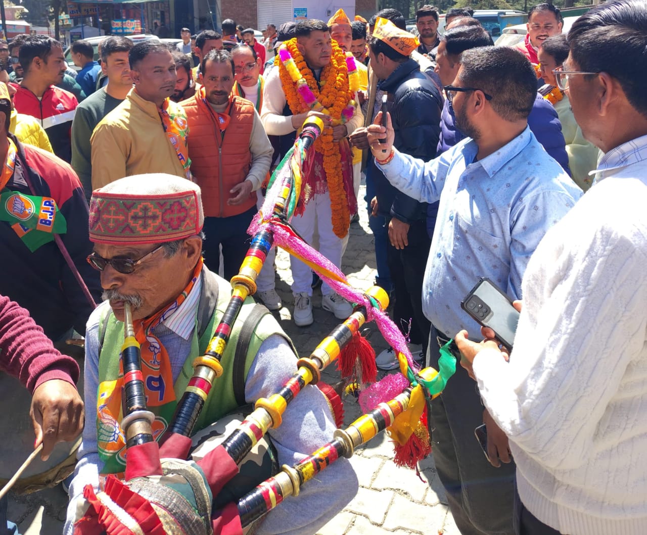 भाजपा जिलाध्यक्ष गोविंद सामंत के लोहाघाट पहुंचने पर कार्यकर्ताओं ने ढोल नगाड़ों के साथ स्वागत किया