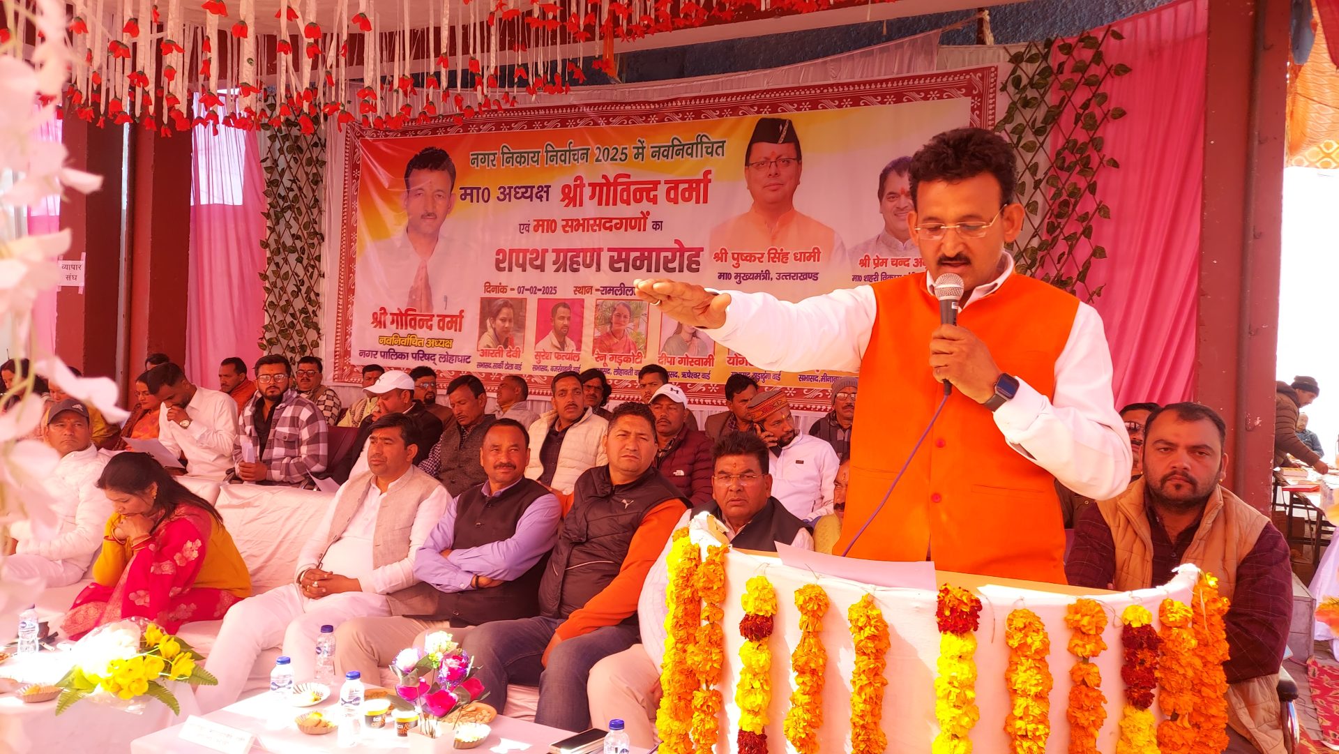 शुक्रवार को एसडीएम नितेश डांगर की अध्यक्षता पर आयोजित कार्यक्रम में मुख्य अतिथि दर्जा राज्य मंत्री गणेश भंडारी रहे। विशिष्ट अतिथि शंकर सिंह कोरंगा और इंदर लुंठी रहे। शपथ ग्रहण समारोह में नव निर्वाचित अध्यक्ष गोविंद वर्मा के साथ सभासद योगेश जोशी, खड़क सिंह बोहरा,आरती देवी, आशीष राय, सुरेश फर्त्याल, दीपा गोस्वामी और रेनू गडकोटी ने शपथ ली। जिसमें पालिका के ईओ सौरभ नेगी ने सभी पदाधिकारियों को पुष्प गुच्छ देकर स्वागत किया। इस दौरान पालिका अध्यक्ष वर्मा ने कहा कि नगर की हर समस्या का वह प्राथमिकता के साथ निदान करेंगे। उन्होंने कहा कि नगर में पानी और स्वास्थ्य की समस्याओं का सीएम धामी से मिलकर निदान करवाया जाएगा। वर्मा ने कहा कि वह लोहाघाट नगर पालिका को लोगों के सहयोग से उत्तराखंड में आदर्श पालिका का दर्जा दिलाने के लिए प्रतिबद्ध हैं। इससे पूर्व कई सांस्कृतिक कार्यक्रमों का आयोजन किया गया। संचालन दीपक जोशी ने किया।